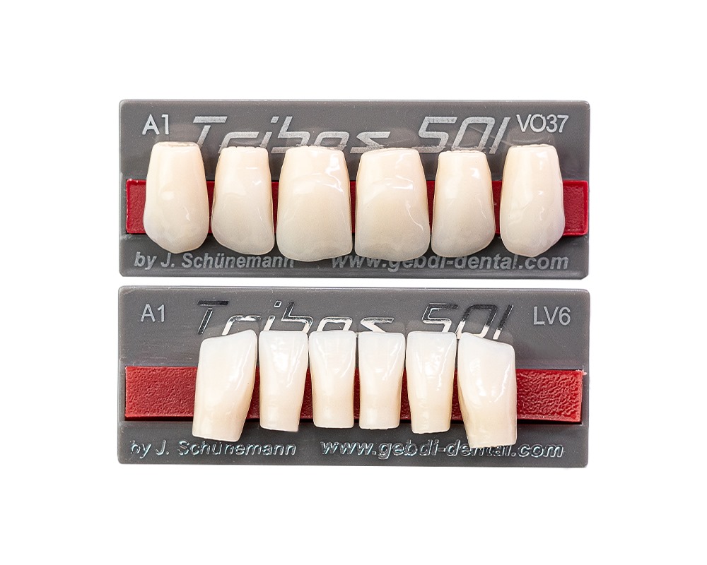 Tribos 501 são dentes de qualidade desenvolvidos com uma estrutura de PMMA, fabricados por um novo sistema de compressão "Mega-Press-Inject" para otimizar a densidade e dureza da superfície. O dente fabricado em um procedimento de 3 camadas obtém, portanto, quase os mesmo valores de qualidade em cada ponto do dente. Isso afeta a duração da prótese e sua suscetibilidade à placa dentária. A precisão da tecnologia de fabricação CAD/CAM é sensivel ao usuário desde o primeiro contato com o Tribos 501.