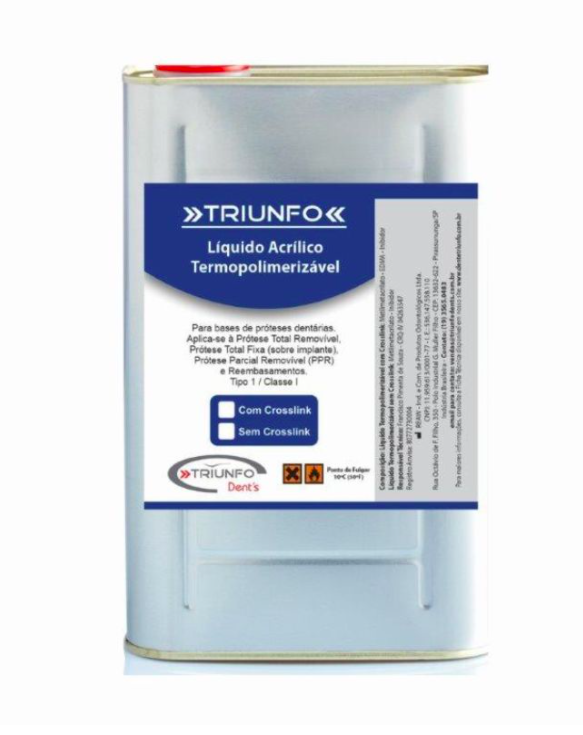 * Instrução de Uso: - Os recipientes e instrumentos que serão utilizados durante o trabalho como também as mãos dos profissionais envolvidos deverão estar livres de impurezas que possam contaminar o produto ao ponto de interferir e alterar no resultado dos trabalhos.- A limpeza realiza-se de maneira simples.- Ao iniciar os trabalhos para a mistura e aplicação recomendamos utilizar os produtos (líquido e pó auto polimerizáveis) em temperatura ambiente se possível mínimo de 15°C e máximo de 30°C.- A proporção ideal de uso do líquido autopolimerizável deverá corresponder a 50% da quantidade utilizada de resina pó autopolimerizável, exemplo: utilizando 14gramas de resina pó a quantidade de líquido deverá ser de 7ml.- Adicione a quantidade de líquido em um recipiente Dappen, silicone ou vidro conforme a quantidade de acrílico que utilizará.- Coloque a resina sobre o líquido tomando cuidado para que não haja excesso de ambos e caso haja, descarte o excesso. Misture com muita atenção e cuidado os produtos com o auxílio de uma espátula até a homogeneização de ambos, a fim de evitar a adição de bolhas de ar.- Observar até o ponto onde a mistura esteja em estado fluído e consistente.- Nota: A resina não deve ser utilizada quando deixar de correr pela espátula (5 - 6 minutos após dosagem, a 23°C).- Não é aconselhável tocar com os dedos o local reparado.- Polimerize levando a resina até a polimerizadora e adicione água em quantidade suficiente. Na sequência, aplique 20 libras de ar comprimido por vinte minutos, tempo necessário para completar a polimerização.- Importante aguardar até a polimerização total da peça para dar início aos trabalhos de acabamento e polimento.- Obs. Na elaboração de consertos e reembasamento, faça a polimerização de forma convencional.* Acabamento e Polimento: O acabamento é iniciado com brocas e fresas, passando para pedras abrasivas e finalizando com lixas de textura fina.* Composição: Metacrilato de Metila, DMT, Dimetacrilato de Etilenoglicol (EDMA), Inibidor e Fluorescente.* Registro ANVISA: Líquido Acrílico Auto - 80772730003.