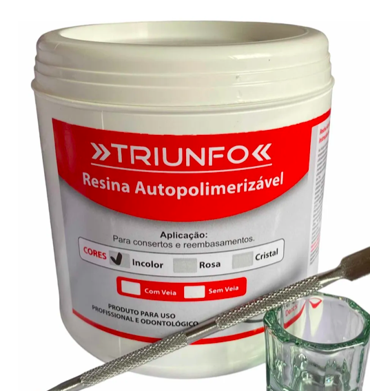 Resina Acrilica Autopolimerizavel indicada para confecção de moldeiras individuais, placas miorrelaxantes, acrilização de aparelhos ortodônticos, consertos e reembasamentos.